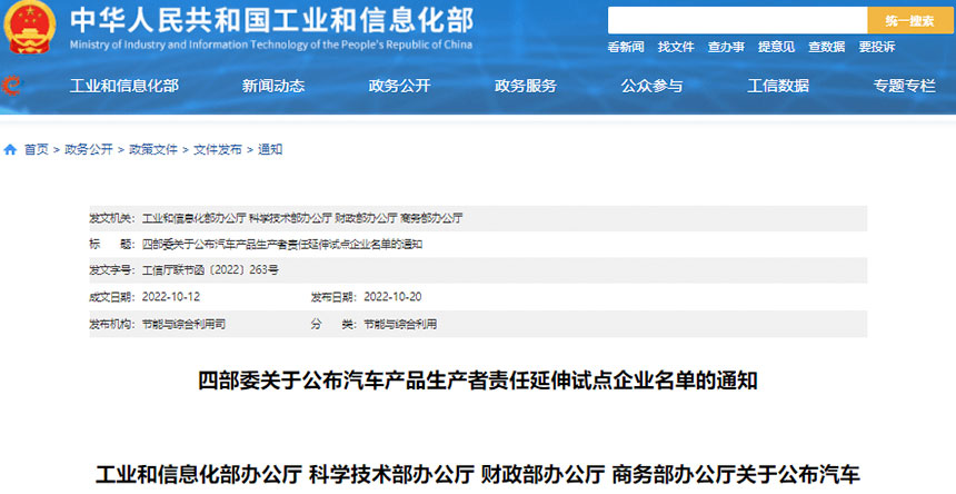 伟翔众翼和上汽集团联合申报成为首批汽车产品生产者责任延伸试点企业